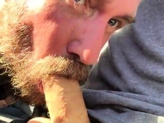 Handsome Grandpa Sucks in His Car